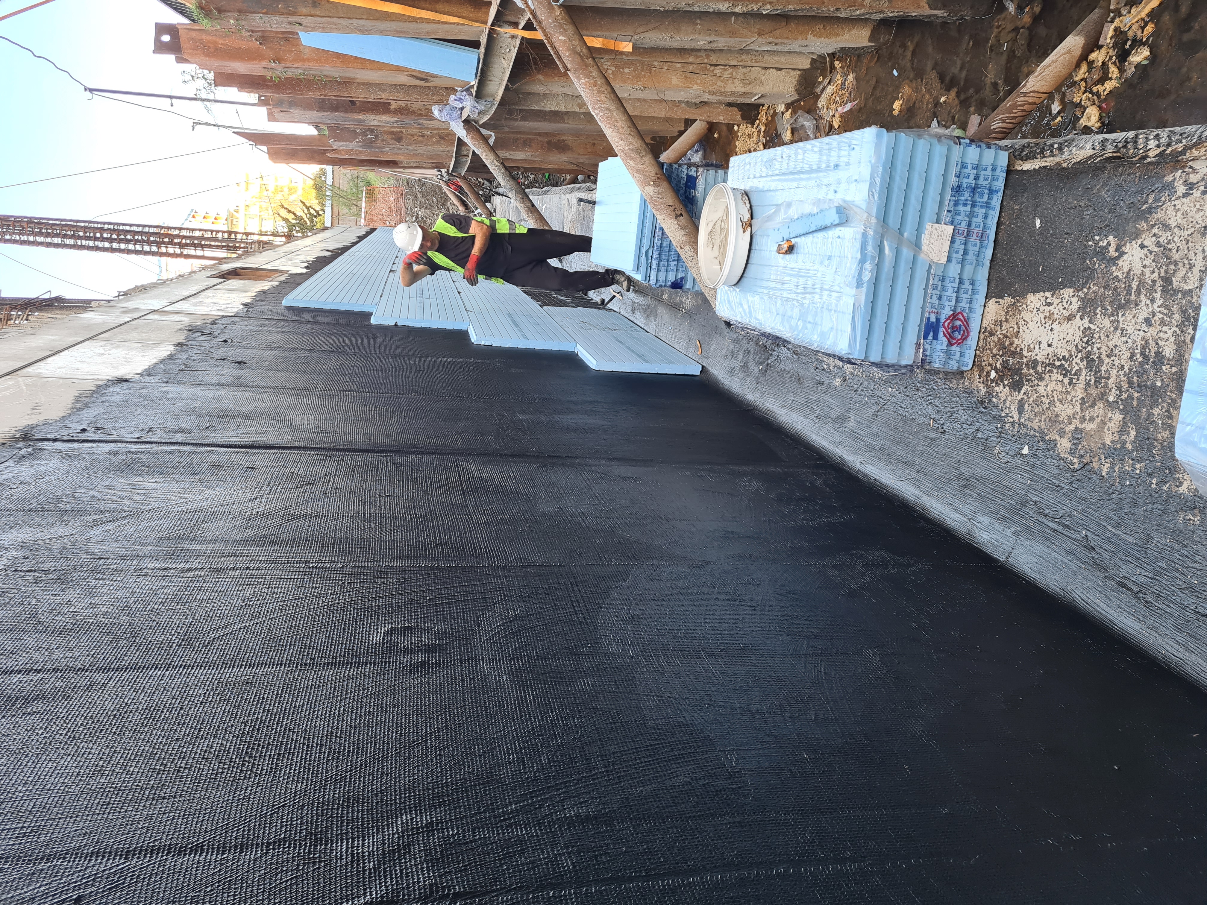 4.პერიმეტრის სრულად დამუშავება ორ კომპონენტიანი ბიტუმ-პოლიმერის ბაზაზე დამზადებული ჰიდროიზოლაციით