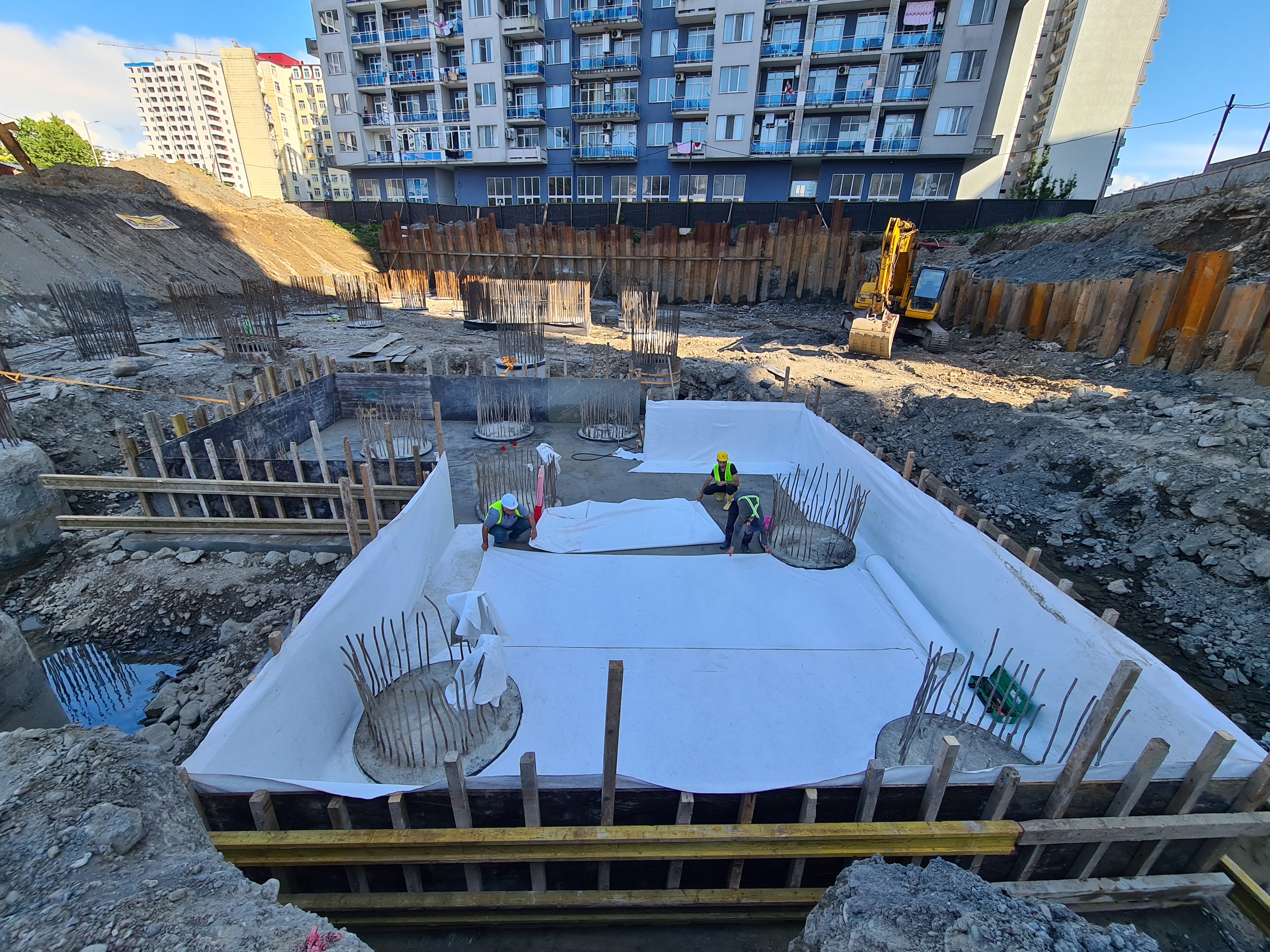2.ჰიდროსაიზოლაციო მემბრანის დაგება-შედუღება 1.5მმ სისქის მთელ პერიმეტრზე